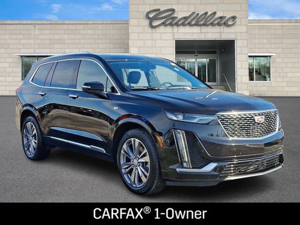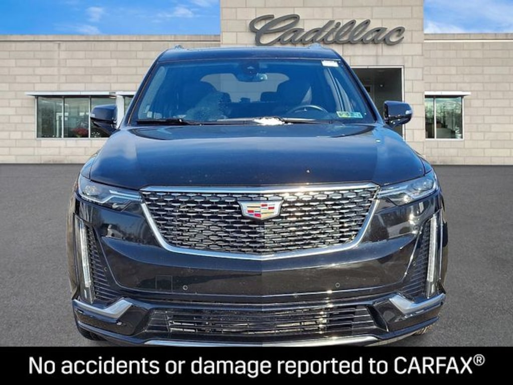 Cadillac Certified Pre-Owned Certified, Automatic Emergency Braking, Dual Driver Info Center Display Gauge Cluster, Front & Rear Park Assist, Inside Rear-View Auto-Dimming Mirror, Navigation System, Preferred Equipment Group 1SD, Teen Driver, 14 Speakers, 2-Way Power Driver Lumbar Control Seat Adjuster, 2-Way Power Passenger Lumbar Control Seat Adjuster, 3rd row seats: split-bench, 4-Wheel Disc Brakes, 6-Passenger Seating, 8-Way Power Driver Seat Adjuster, ABS brakes, Air Conditioning, Alloy wheels, AM/FM radio: SiriusXM with 360L, Audio memory, Auto High-beam Headlights, Auto tilt-away steering wheel, Auto-dimming door mirrors, Auto-dimming Rear-View mirror, Automatic Stop/Start w/Disable, Automatic temperature control, Bose Performance Series Audio System, Brake assist, Bumpers: body-color, Compass, Delay-off headlights, Deleted 3 Years of OnStar Digital Services, Driver & Front Passenger Heated Seats, Driver door bin, Driver vanity mirror, Dual front impact airbags, Dual front side impact airbags, Electronic Stability Control, Emergency communication system: OnStar and Cadillac connected services capable, Four wheel independent suspension, Front anti-roll bar, Front Bucket Seats, Front Center Armrest, Front dual zone A/C, Front reading lights, Fully automatic headlights, Garage door transmitter, Genuine wood dashboard insert, Genuine wood door panel insert, Heated door mirrors, Heated front seats, Heated rear seats, Heated steering wheel, Illuminated entry, Knee airbag, Leather Seating Surfaces w/Mini-Perforated Inserts, Leather steering wheel, Low tire pressure warning, Memory seat, Occupant sensing airbag, Outside temperature display, Overhead airbag, Overhead console, Panic alarm, Passenger door bin, Passenger vanity mirror, Power door mirrors, Power driver seat, Power Liftgate, Power moonroof: UltraView, Power passenger seat, Power steering, Power windows, Radio data system, Radio: Cadillac User Experience w/Embedded Nav, Rain sensing wipers, Rear air conditioning, Rear anti-roll bar, Rear reading lights, Rear seat center armrest, Rear window defroster, Rear window wiper, Remote keyless entry, Ride & Handling Suspension, Security system, SiriusXM w/360L, Speed control, Speed-sensing steering, Split folding rear seat, Spoiler, Steering wheel memory, Steering wheel mounted audio controls, Tachometer, Telescoping steering wheel, Tilt steering wheel, Traction control, Trip computer, Turn signal indicator mirrors, Variably intermittent wipers, Ventilated Driver & Front Passenger Seats, Ventilated front seats, Voltmeter, Wheels: 20" 6-Split Spoke Alloy, Wireless Apple CarPlay/Wireless Android Auto, 1-OWNER, CERTIFIED, CLEAN CARFAX, FRESH OIL CHANGE, INCREDIBLE SERVICE HISTORY, NEW PA INSPECTION, PROFESSIONAL DETAIL, Automatic Emergency Braking, Dual Driver Info Center Display Gauge Cluster, Front & Rear Park Assist, Inside Rear-View Auto-Dimming Mirror, Navigation System, Preferred Equipment Group 1SD, Teen Driver. Clean CARFAX. CARFAX One-Owner. Stellar Black Metallic 2025 Cadillac XT6 Premium Luxury AWD 9-Speed Automatic 3.6L V6 DI VVT
