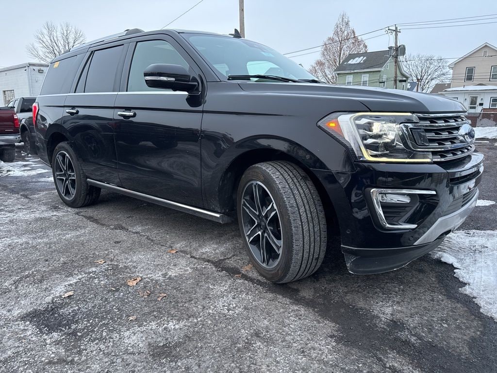 The luxurious heated and ventilated leather seats offer incredible comfort. A massive Panoramic Roof fills the cabin with light. You'll also find BLIS blind spot monitoring, power tilt and telescoping steering wheel, power pedals, 2nd row heated seats, a power folding 3rd row and so much more. An 8 inch SYNC 3 screen offers a Navigation System, Bluetooth, Sirius Satellite Radio and Apple CarPlay or Android Auto compatibility. The Premium Bang and Olufsen sound system offers 12 speakers for rich, immersive sound. Outside, automatic power deploying running boards ease entrance into the roomy interior. Adaptive Cruise Control with Stop-And-Go technology is perfect on the highway or around town. The 3.5L Twin Turbo EcoBoost V-6 produces 375HP and a whopping 470 lb-ft of torque providing plenty of performance in combination with the Class IV trailer tow package. Enhanced safety engineering delivers a 5 star Overall Safety rating. Your passengers will enjoy any outing in this gorgeous Expedition.