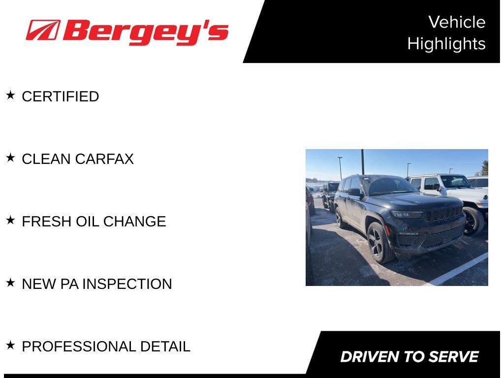Recent Arrival! Clean CARFAX. CARFAX One-Owner. Certified. Diamond Black Crystal Pearlcoat 2024 Jeep Grand Cherokee Limited 4WD 8-Speed Automatic 3.6L V6 24V VVT CERTIFIED, CLEAN CARFAX, FRESH OIL CHANGE, NEW PA INSPECTION, PROFESSIONAL DETAIL.