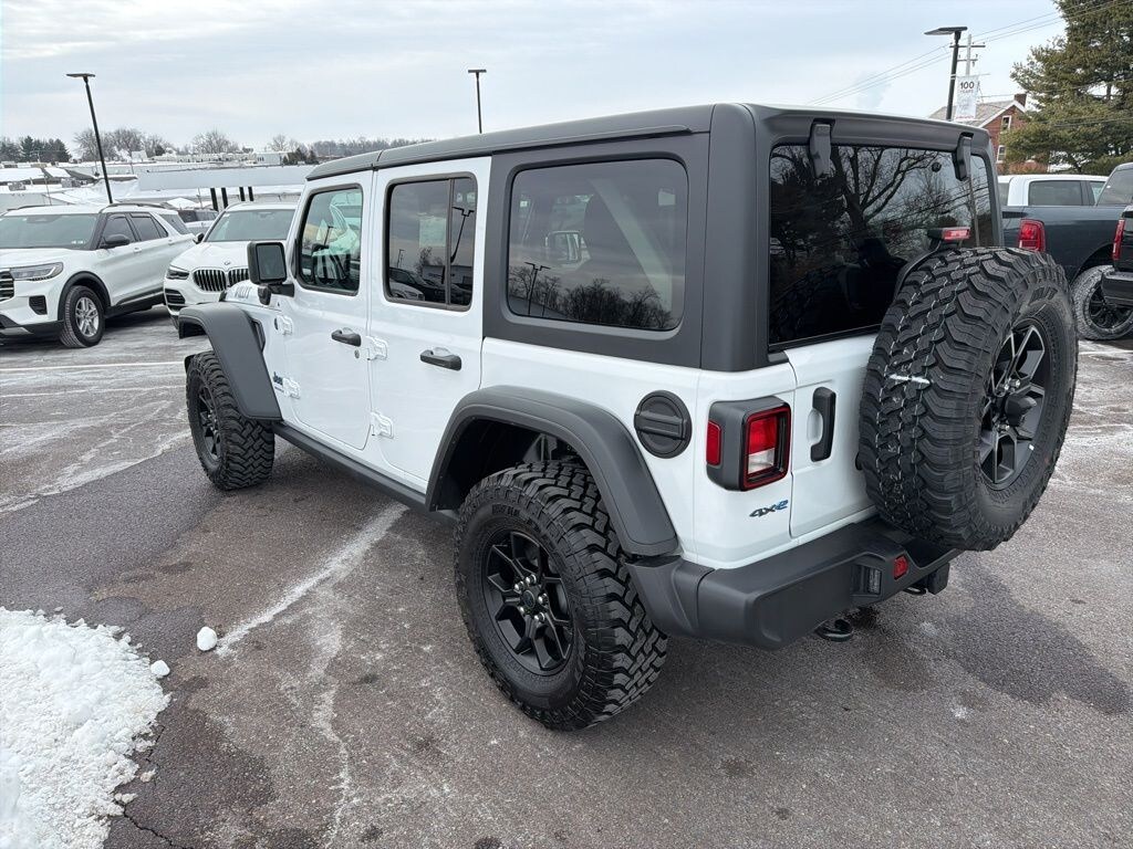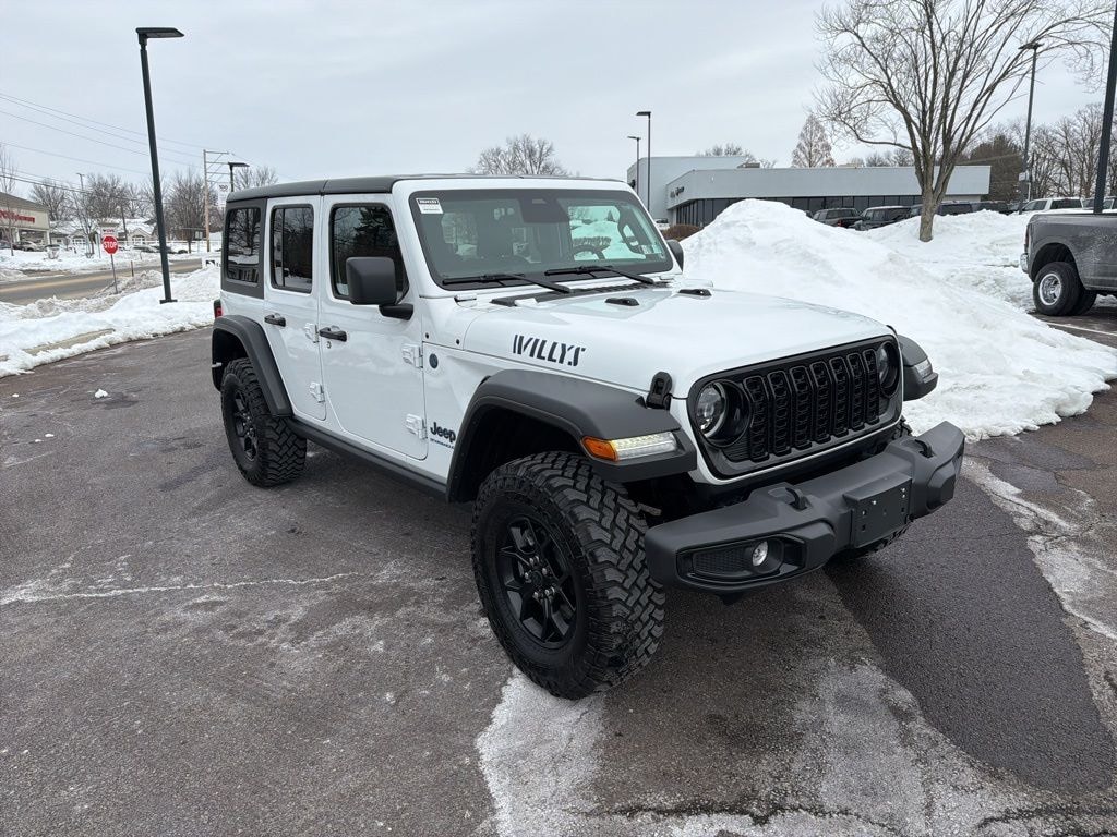 Recent Arrival! Clean CARFAX. CARFAX One-Owner. Certified. Bright White Clearcoat 2025 Jeep Wrangler Willys 4xe 4WD 8-Speed Automatic 2.0L I4 DOHC CERTIFIED, CLEAN CARFAX, FRESH OIL CHANGE, NEW PA INSPECTION, PROFESSIONAL DETAIL.