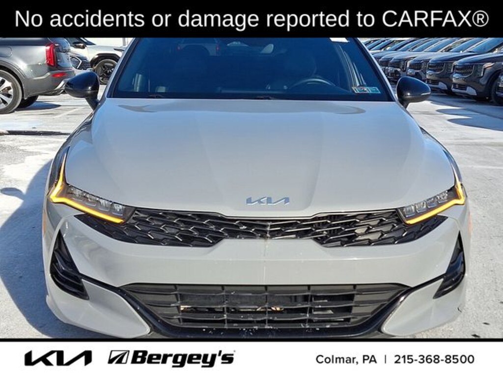 Certified. Wolf Gray 2023 Kia K5 GT-Line FWD 8-Speed Automatic 1.6L I4 DGI Turbocharged DOHC 16V LEV3-ULEV70 180hp 1-OWNER, CERTIFIED, CLEAN CARFAX, FRESH OIL CHANGE, LOCALLY OWNED, NEW PA INSPECTION, PROFESSIONAL DETAIL.