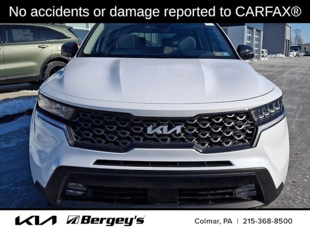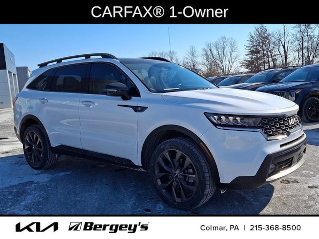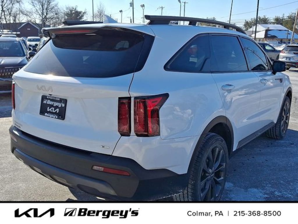 Certified. Glacial White Pearl 2023 Kia Sorento X-Line EX AWD 8-Speed DCT 2.5L I4 DGI Turbocharged DOHC 16V LEV3-ULEV70 281hp AWD.