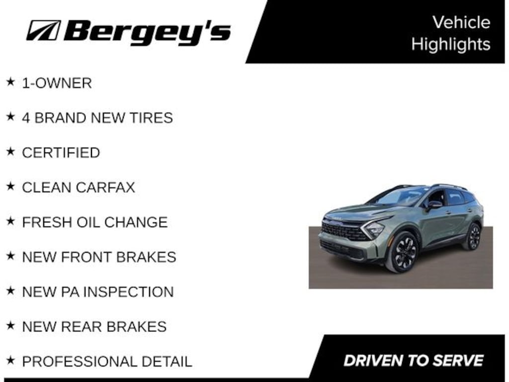 Certified. Jungle Green 2023 Kia Sportage X-Line AWD 8-Speed Automatic I4 1-OWNER, 4 BRAND NEW TIRES, CERTIFIED, CLEAN CARFAX, FRESH OIL CHANGE, NEW FRONT BRAKES, NEW PA INSPECTION, NEW REAR BRAKES, PROFESSIONAL DETAIL, AWD.