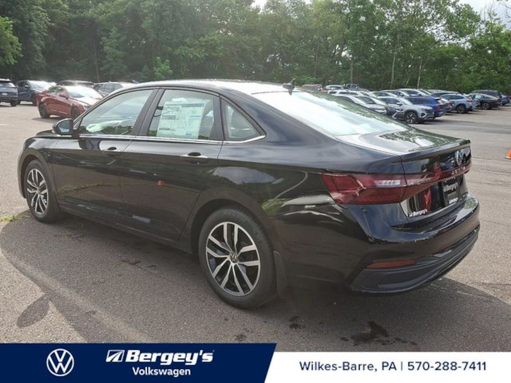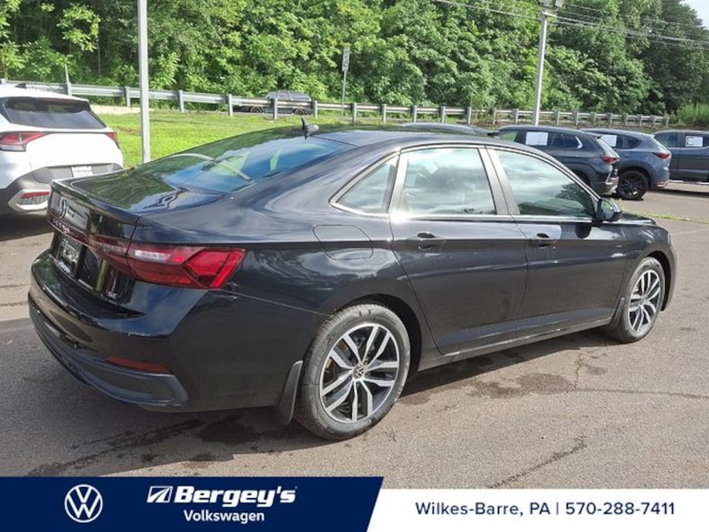 Deep Black 2025 Volkswagen Jetta 1.5T SE FWD 8-Speed Automatic with Tiptronic 1.5L I-4 DI DOHC Turbocharged Grigio Blacl Artificial Leather.
