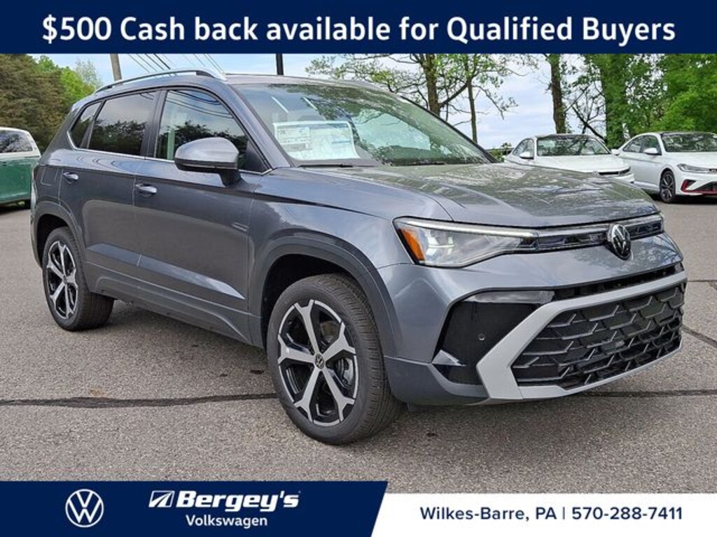 Platinum Gray 2025 Volkswagen Taos 1.5T SEL AWD 8-Speed Automatic with Tiptronic 1.5L I4 Turbocharged DOHC 16V LEV3-SULEV30 174hp