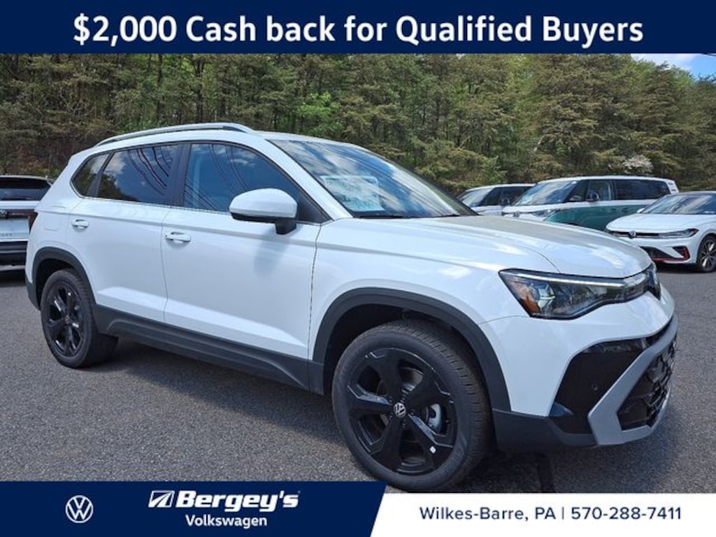 Pure White 2025 Volkswagen Taos 1.5T SEL AWD 8-Speed Automatic with Tiptronic 1.5L I4 Turbocharged DOHC 16V LEV3-SULEV30 174hp