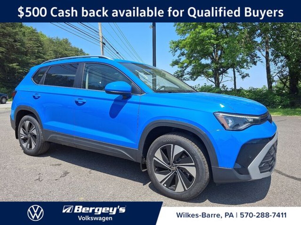 Blue 2025 Volkswagen Taos 1.5T SE AWD 8-Speed Automatic with Tiptronic 1.5L I4 Turbocharged DOHC 16V LEV3-SULEV30 174hp