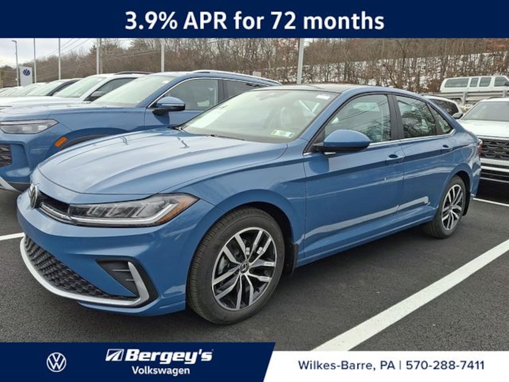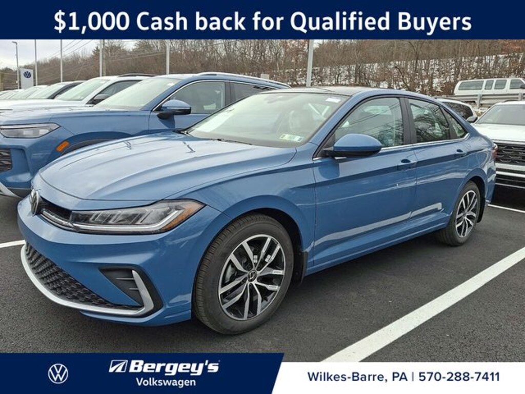 Monterey Blue Pearl 2026 Volkswagen Jetta 1.5T SE FWD 8-Speed Automatic with Tiptronic 1.5L I-4 DI DOHC Turbocharged Grigio/Titan Black Artificial Leather.
