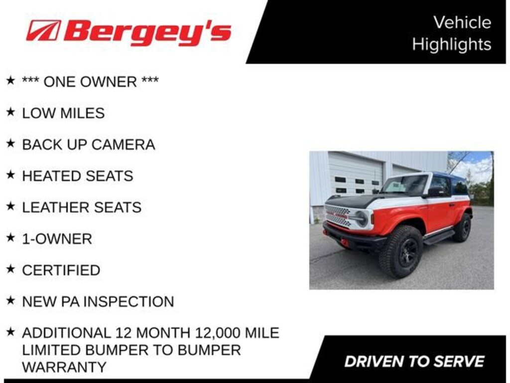 The 2025 Ford Bronco Stroppe Edition is a true off-road legend, meticulously crafted to conquer any terrain with style and capability. This one-owner gem boasts a stunning white exterior and a powerful 2.7L EcoBoost V6 engine, paired with a 10-speed automatic transmission and 4-wheel drive. With its impressive fuel efficiency of 17 city/18 highway MPG, this Bronco is ready to take you on unforgettable adventures while keeping your wallet happy.