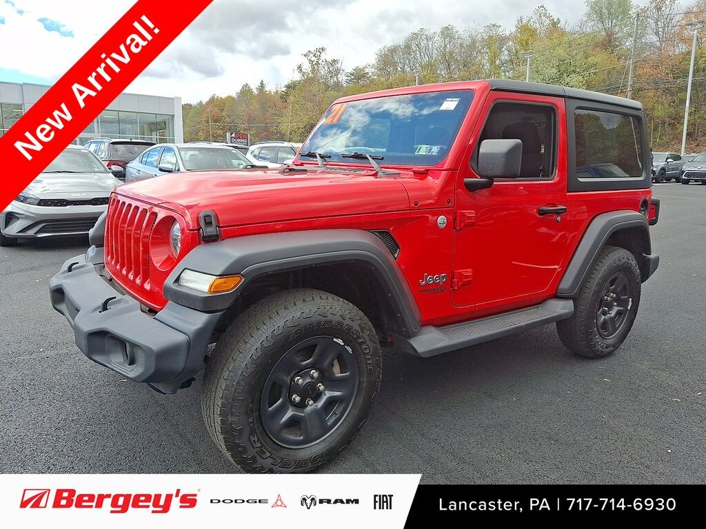Certified. Firecracker Red Clearcoat 2D Sport Utility CARFAX One-Owner. 2021 Jeep 17/25 City/Highway MPG Wrangler Sport S 4WD 6-Speed Manual 3.6L V6 24V VVT 1-OWNER, CERTIFIED, CLEAN CARFAX, FRESH OIL CHANGE, NEW PA INSPECTION, PROFESSIONAL DETAIL, 7.0" Touchscreen Display, Air Conditioning, Air Conditioning w/Auto Temperature Control, Air Filtering, Anti-Spin Differential Rear Axle, Apple CarPlay, Automatic Headlamps, Black 3-Piece Hard Top, Cluster 7.0" TFT Color Display, Cold Weather Group, Convenience Group, Deep Tint Sunscreen Windows, For More Info Call 800-643-2112, Freedom Panel Storage Bag, Front 1-Touch Down Power Windows, Front LED Fog Lamps, Google Android Auto, GPS Antenna Input, Heated Front Seats, Heated Steering Wheel, Integrated Center Stack Radio, Leather Wrapped Steering Wheel, LED Headlamp & Fog Lamp Group, LED Premium Reflector Headlamps, No Soft Top, Power Heated Mirrors, Quick Order Package 23S Sport S, R1234YF A/C Refrigerant, Radio: Uconnect 4 w/7" Display, Rear Window Defroster, Rear Window Wiper/Washer, Remote Keyless Entry, Security Alarm, SiriusXM Radio Service, SiriusXM Satellite Radio, Speed Sensitive Power Locks, Sport S, Sun Visors w/Illuminated Vanity Mirrors, Technology Group, Universal Garage Door Opener, USB Host Flip, Wheels: 17" x 7.5" Tech Silver Aluminum.