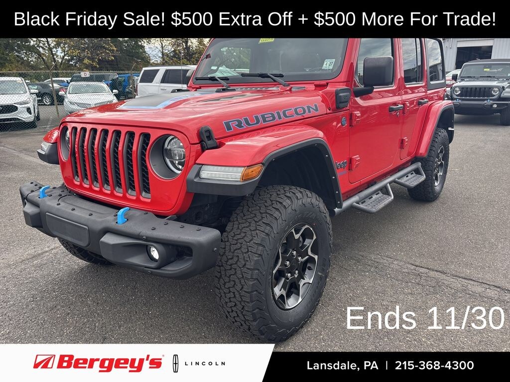 2022 JEEP WRANGLER UNLIMITED RUBICON 2.0L DOHC DI 4XE W/ COLD WEATHER PKG! ONE OWNER! ORIGINAL MSRP $69,580! HEATED FRONT SEATS, HEATED STEERING WHEEL, APPLECARPLAY! BALANCE OF FACTORY WARRANTY! State Inspection & First Oil Change At Bergeys! Firecracker Red Exterior, Black/ Dark Saddle Leather Interior. Vehicle Features: 2.0L I4 DOHC DI TURBO PHEV Engine, 8-Speed Automatic Transmission, 4 Wheel Drive, Heated Front Seats, Remote Start System, Heated Steering Wheel, Leather Wrapped Steering Wheel, Trailer-Tow and Heavy-Duty Electrical Group, Auxiliary Switches, 700-Amp Maintenance Free Battery, Class II Receiver Hitch, 7- and 4-Pin Wiring Harness, Black 3-Piece Hard Top, Black Sunrider Soft Top, Freedom Panel Storage Bag, Rear Window Defroster, Rear Window Defroster, Rear Window Wiper/Washer, All Weather Floor Mats By Mopar, Windshield w/ Corning Gorilla Glass, Body-Color Rubicon Highline Flare, Grab Handle Kit By Mopar, Hinge-Gate Reinforcement By Mopar, Full Size Spare Tire, 2-Front 1-Rear Tow Hooks, Power Heated Mirrors, Automatic Headlamps, Tire Pressure Monitoring Display, 155-Volt Auxiliary Power Outlet, Rear 60/40 Folding Seat, Electronic Stability Control, Front Disconnecting Stabilizer Bar, Trailer Sway Damping, 7.0 TFT Color Cluster Display, Apple CarPlay, Google Android Auto, SiriusXM Available w/ Subscription, Leather Wrapped Steering Wheel, Full Function Media Hub w/ 2 USB Plus Aux Ports, Integrated Voice Command w/ Bluetoot, Power Front Windows w/ 1 Touch Down, Air Conditioning w/ Automatic Temperature Control, Remote-Proximity Keyless Entry, Mold-In-Color Rubicon Highline Flare, 17 x 7.5 Machined Wheels w/ Black Pockets, LED Lighting Group, 8.4 Radio and Premium Audio Group, Uconnect Navigation w/ 8.4 Display, Battery Charge Indicator, 4.10 Rear Axle Ratio, Tru-Lok Front and Rear Axles, Rock Protection Sill Rails, Selec-Speed Control, Power Locking Fuel-Filler Door, Advanced Multistage Airbags, Supplemental Front Seat-Mounted Side Airbags, Media Hub w/ 2 Charge-Only USB Ports, Automatic-Dimming Rear View Mirror, Tinted Windshield Glass, Ambient LED Interior Lighting, Universal Garage Door Opener. Financing Available! Extended Service Contract Options Available! Please call or email to confirm vehicle availability. Check out our website for the complimentary Carfax report!