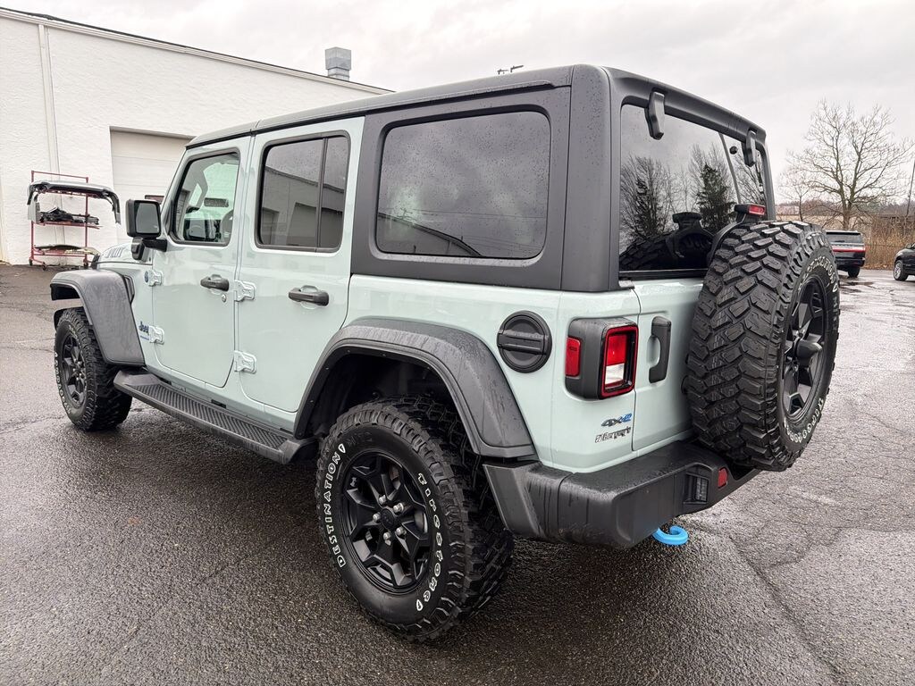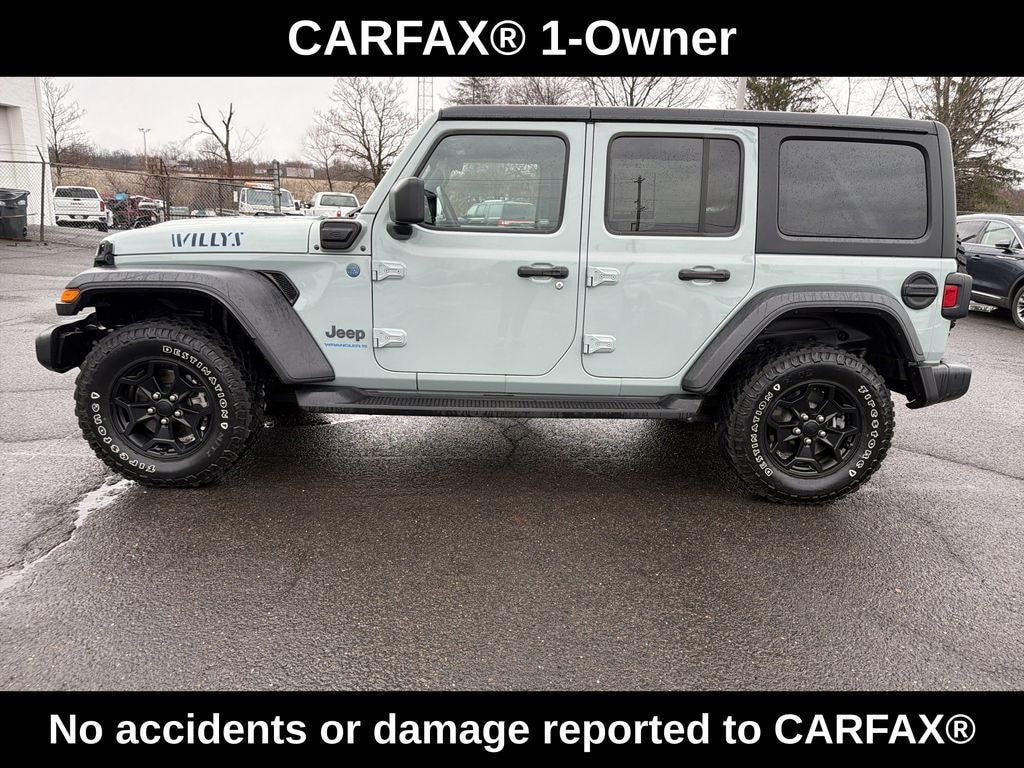 2023 JEEP WRANGLER 4XE UNLIMITED WILLYS HARD TOP 2.0L 4WD w/ CONVENIENCE & COLD WEATHER PKG! ONE OWNER! CLEAN CARFAX! ORIGINAL MSRP: $60,645.00! HEATED SEATS, HEATED STEERING WHEEL, REMOTE START, 17 WHEELS! BALANCE OF FACTORY WARRANTY! PA State Inspection & First Oil Change At Bergey's! Earl Clear-Coat Exterior, Black Interior. 2.0L Turbocharged Plug-In Hybrid Engine, 8-Speed Automatic Transmission, Plug-In Hybrid Electric Vehicle System, Four Wheel Drive, Command-Trac Part-Time 4WD System, Dana Front And Rear Axles, Electronic Stability Control, Electronic Roll Mitigation, Hill Start Assist, Trailer Sway Damping, Regenerative 4-Wheel Disc Anti-Lock Brakes, ParkView Rear Back-Up Camera, Selec-Speed Control, Remote Keyless Entry, Push Button Start, Uconnect 4 With 7-Inch Touchscreen Display, Apple CarPlay, Google Android Auto, SiriusXM Satellite Radio Ready, Integrated Voice Command With Bluetooth, 8 Speakers, USB And Auxiliary Inputs, Air Conditioning With Automatic Temperature Control, Tilt And Telescoping Steering Column, Steering Wheel Mounted Audio Controls, Full Length Floor Console, 60/40 Split Folding Rear Seat, Molded-In Color Fender Flares, Front And Rear Tow Hooks, Halogen Headlamps With Off-Time Delay, Rock Protection Sill Rails, Anti-Spin Differential Rear Axle, LED Headlamp And Fog Lamp Group, LED Premium Reflector Headlamps, LED Front Fog Lamps, Cold Weather Group, Heated Front Seats, Heated Steering Wheel, Remote Start System, Leather-Wrapped Steering Wheel, Convenience Group, Universal Garage Door Opener, Black 3-Piece Hard Top, Rear Window Defroster, Rear Window Wiper And Washer. Financing Available! Extended Service Contracts Available! Please Call Or Email To Confirm Vehicle Availability. Check Out Our Website For The Complimentary CARFAX Report!