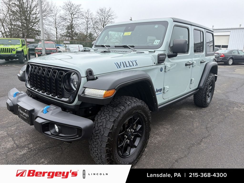 2024 JEEP WRANGLER UNLIMITED 4XE WILLYS HARD TOP 2.0L 4WD w/ CONVENIENCE & SAFETY PKG! ONE OWNER! CLEAN CARFAX! ORIGINAL MSRP: $62,010.00! HEATED STEATS, HEATED STEERING WHEEL, REMOTE START, 20 WHEELS! BALANCE OF FACTORY WARRANTY! PA State Inspection & First Oil Change At Bergey's! Bright White Clear-Coat Exterior, Black Interior. 2.0L I4 DOHC DI Turbo Plug-In Hybrid Engine, 8-Speed Automatic 8P75PH PHEV Transmission, Selec-Trac Full-Time 4WD System, Heavy-Duty Dana 44 Front And Rear Axles, 4.10 Rear Axle Ratio, Regenerative Braking System, Electric Power Steering, 4-Wheel Disc Anti-Lock Brakes, Electronic Stability Control, Hill Start Assist, Selec-Speed Control, Adaptive Cruise Control With Stop, Full-Speed Forward Collision Warning Plus, Advanced Brake Assist, Blind Spot Monitoring With Rear Cross Path Detection, ParkSense Rear Park Assist, ParkView Rear Back-Up Camera, Remote Start System, Keyless Entry, Push Button Start, Universal Garage Door Opener, Uconnect 5 With 12.3-Inch Touchscreen Display, Apple CarPlay & Android Auto, SiriusXM Satellite Radio Ready, Integrated Voice Command With Bluetooth, 4G LTE Wi-Fi Hotspot Capability, Premium Audio System, Dual-Zone Automatic Climate Control, Heated Front Seats, Heated Steering Wheel, Premium Cloth Low-Back Bucket Seats, Power Windows With One-Touch Down, Air Conditioning With Automatic Temperature Control, LED Premium Reflector Headlamps, Automatic Headlamps, Fog Lamps, Deep Tint Sunscreen Windows, Variable Intermittent Wipers, Black 3-Piece Hard Top, Freedom Panel Storage Bag, Rear Window Defroster, Rear Window Wiper/Washer, Trailer Tow & Aux Switch Group With 7-Pin And 4-Pin Wiring Harness, 17-Inch Black Wheels With All-Terrain Tires, Rock Protection Sill Rails, Off-Road Plus Mode, Willys Suspension, Body-Color Fender Flares. Financing Available! Extended Service Contracts Available! Please Call Or Email To Confirm Vehicle Availability. Check Out Our Website For The Complimentary CARFAX Report!