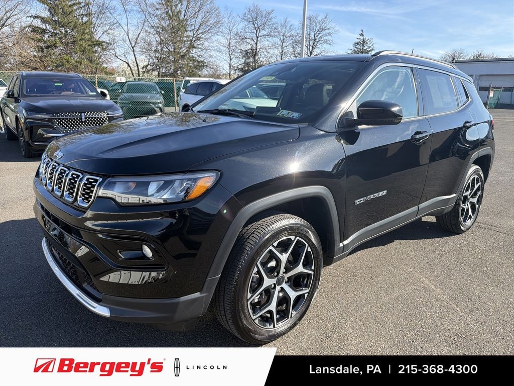 2025 JEEP COMPASS LIMITED 2.0T 4WD w/ SUN & SOUND PKG! ONE OWNER! CLEAN CARFAX! ORIGINAL MSRP: $38,110! HEATED SEATS, HEATED STEERING WHEEL, DUAL PANE PANORAMIC SUNROOF, ALPINE PREMIUM AUDIO! BALANCE OF FACTORY WARRANTY! PA State Inspection & First Oil Change At Bergey's! Diamond Black Crystal Pearl-Coat Exterior, Black Leather Interior. 2.0L DOHC DI Turbo Engine With Stop/Start, 8-Speed Automatic Transmission, Four-Wheel Drive. Advanced Multistage Front Airbags, Driver Inflatable Knee-Bolster Airbag, Full-Speed Forward Collision Warning Plus, Blind-Spot And Cross-Path Detection, Active Lane-Management System, Pedestrian/Cyclist Emergency Braking, Rear-Seat Reminder Alert, Drowsy Driver Detection, Automatic High-Beam Headlamp Control, Adaptive Cruise Control With Stop And Go, Supplemental Side Curtain Front And Rear Airbags. Front Door Passive Entry And Lock, Rain-Sensitive Windshield Wipers, ParkSense Rear Park-Assist System, ParkView Rear Back-Up Camera, Windshield Wiper De-Icer, Remote Start System, Security Alarm, Selec-Terrain System, Electronic Stability Control, Electronic Roll Mitigation, Advanced Brake Assist, Performance Antilock Four-Wheel Disc Brakes. 10.1-Inch Touchscreen Display, SiriusXM Ready, Apple CarPlay, Google Android Auto, Hands-Free Phone And Audio, Steering Wheel Mounted Audio Controls, Two-Way Power Lumbar Adjustable Driver Seat, Eight-Way Power Adjustable Driver Seat, Power Front Windows With One-Touch Up And Down, Heated Front Seats, Heated Steering Wheel, Heated Leather-Wrapped Steering Wheel, Rear 60/40 Folding Seat, Air Conditioning With Dual-Zone Automatic Temperature Control. LED Exterior Lighting, Fog Lamps, LED Reflector Headlamps. Customer Preferred Package 29G, Sun And Sound Group, Dual-Pane Panoramic Sunroof, Premium Alpine Speaker System, 18-Inch Aluminum Wheels. Financing Available! Extended Service Contract Options Available! Please call or email to confirm vehicle availability. Check out our website for the complimentary CARFAX report!