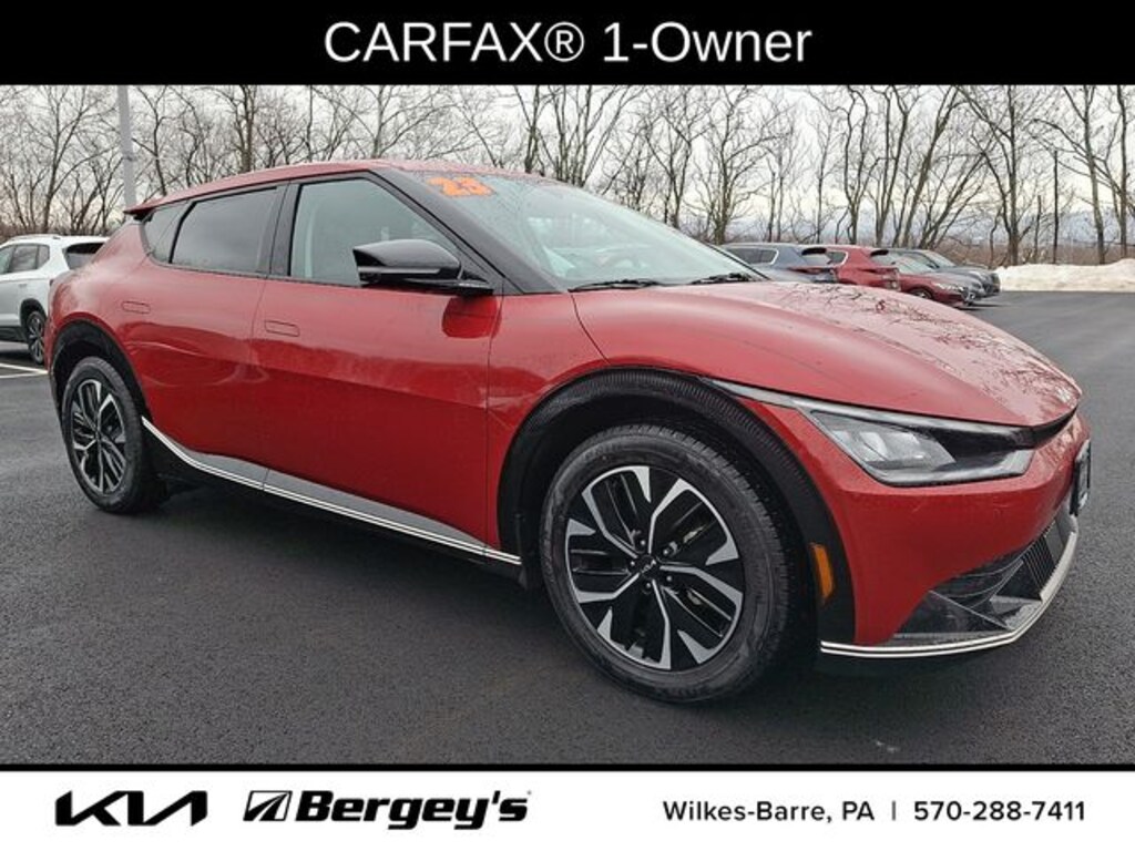 Certified. Runway Red 2023 Kia EV6 Wind AWD 1-Speed Automatic Electric Motor 1-OWNER, CERTIFIED, CLEAN CARFAX, FRESH OIL CHANGE, NEW PA INSPECTION, PROFESSIONAL DETAIL.