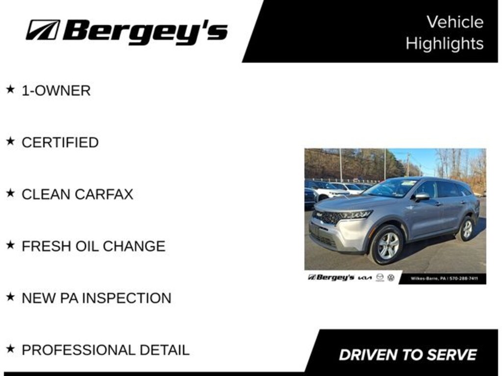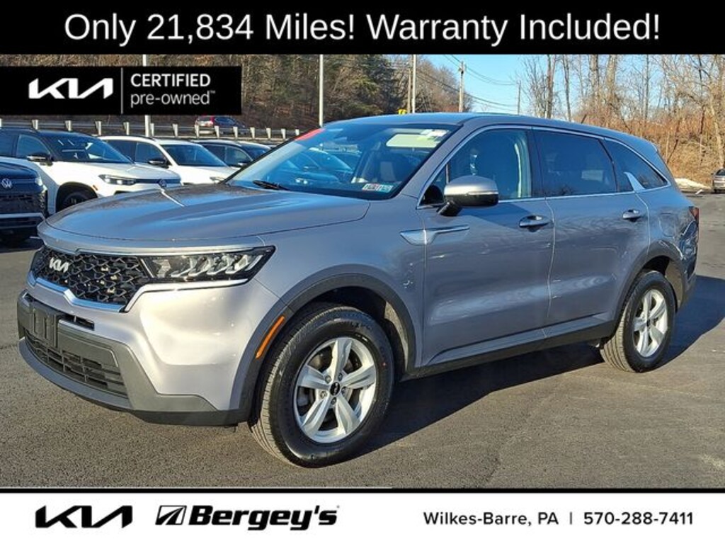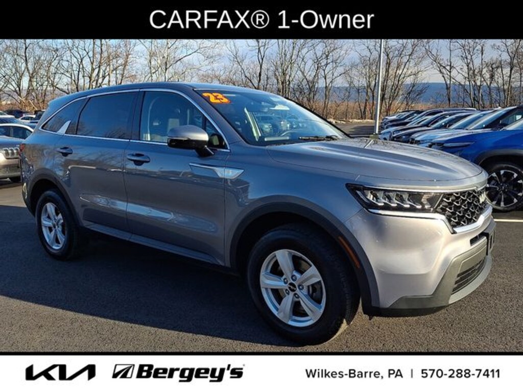 Certified. Everlasting Silver 2023 Kia Sorento LX AWD 8-Speed Automatic 2.5L I4 DGI DOHC 16V LEV3-ULEV70 191hp 1-OWNER, CERTIFIED, CLEAN CARFAX, FRESH OIL CHANGE, NEW PA INSPECTION, PROFESSIONAL DETAIL, AWD.