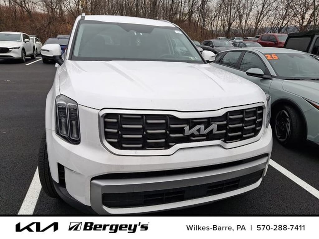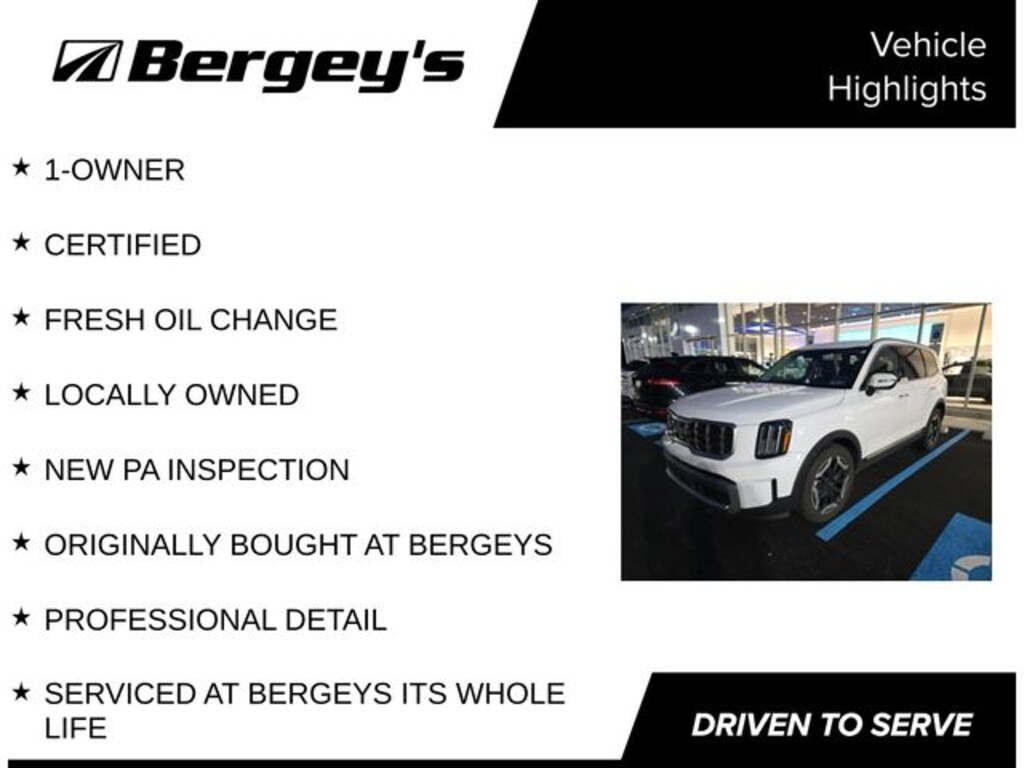 Certified. Glacial White Pearl 2023 Kia Telluride S AWD 8-Speed Automatic 3.8L V6 DGI DOHC Dual CVVT 1-OWNER, CERTIFIED, FRESH OIL CHANGE, LOCALLY OWNED, NEW PA INSPECTION, ORIGINALLY BOUGHT AT BERGEYS, PROFESSIONAL DETAIL, SERVICED AT BERGEYS ITS WHOLE LIFE.