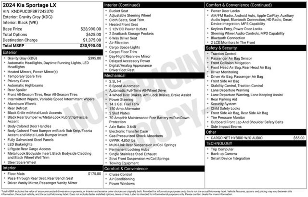 Certified. Gravity Gray 2024 Kia Sportage LX AWD 8-Speed Automatic I4 AWD.