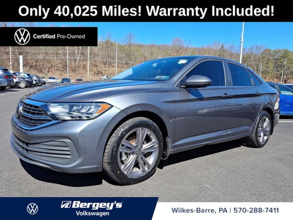 Powered by a 1.5L I-4 DI DOHC Turbocharged engine mated to an 8-Speed Automatic with Tiptronic transmission, this Jetta delivers an impressive blend of power and efficiency, with an EPA-estimated 29 MPG in the city and 40 MPG on the highway. The sleek Gray exterior complements the well-appointed interior, featuring V-Tex Leatherette Seat Trim, Heated Front Comfort Sport Seats, and a Panoramic Sunroof that floods the cabin with natural light.